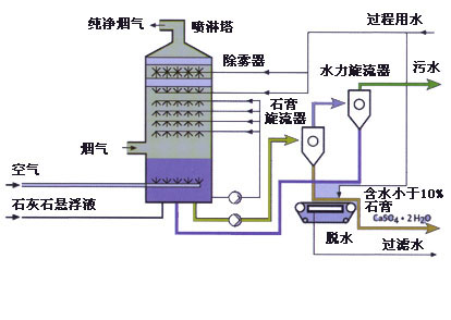 經(jīng)多次循環(huán)后的脫硫漿液排入后處理系統(tǒng),脫硫后的煙氣通過(guò)塔頂除霧器時(shí),利用其導(dǎo)向作用產(chǎn)生強(qiáng)大的離心力,將煙氣中的液滴分離出來(lái),達(dá)到同時(shí)除塵除霧的效果。潔凈煙氣*終達(dá)標(biāo)排放。